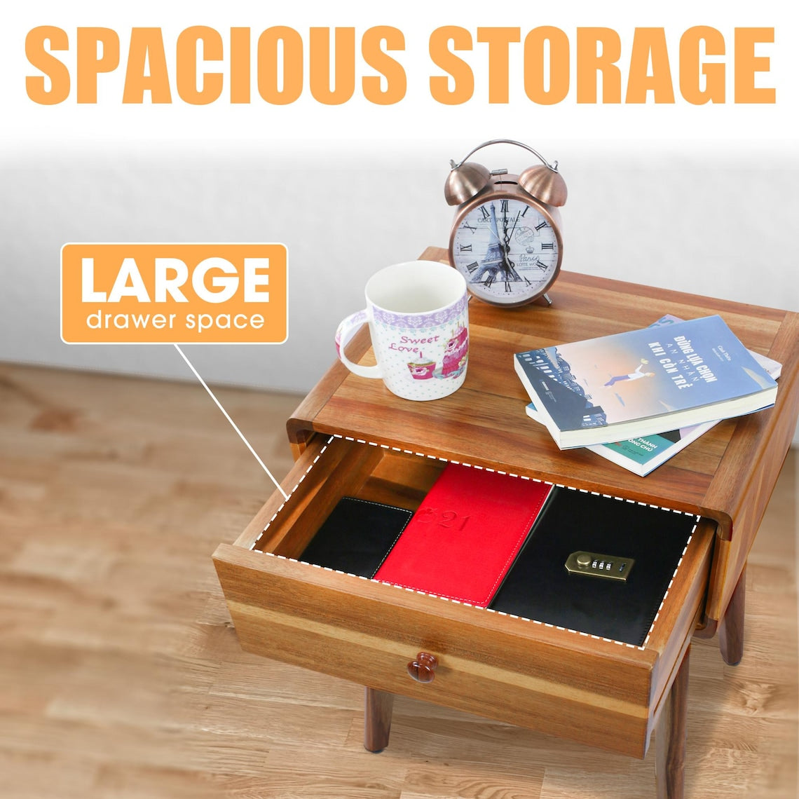 Mid Century Acacia Nightstand: Handcrafted Bedroom Side Table with Acrylic Coating