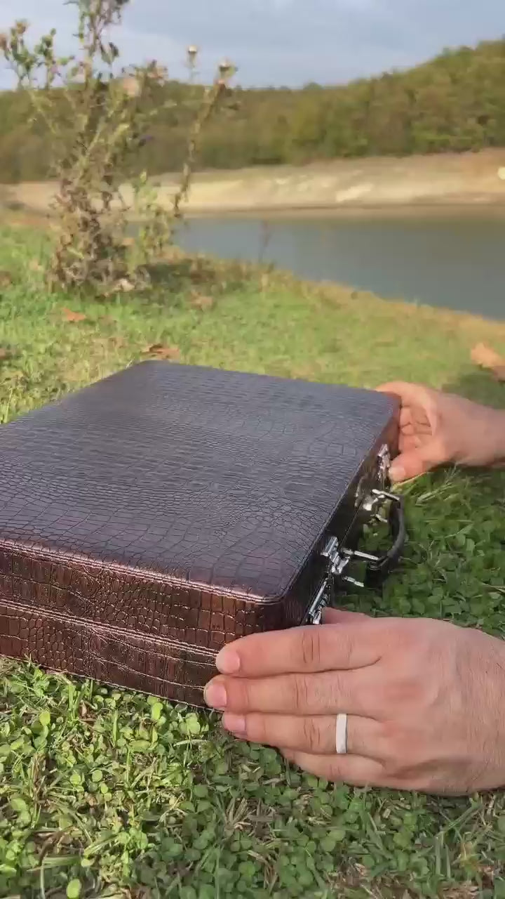 Our handmade faux leather-wooden backgammon sets offer exceptional features that will elevate your gaming experience. These sets are meticulously crafted from carefully selected high-quality hardwood materials. The patterns not only enhance the aesthetics but also ensure the longevity of your cherished backgammon set. All these features combine to provide players with an excellent gaming quality.